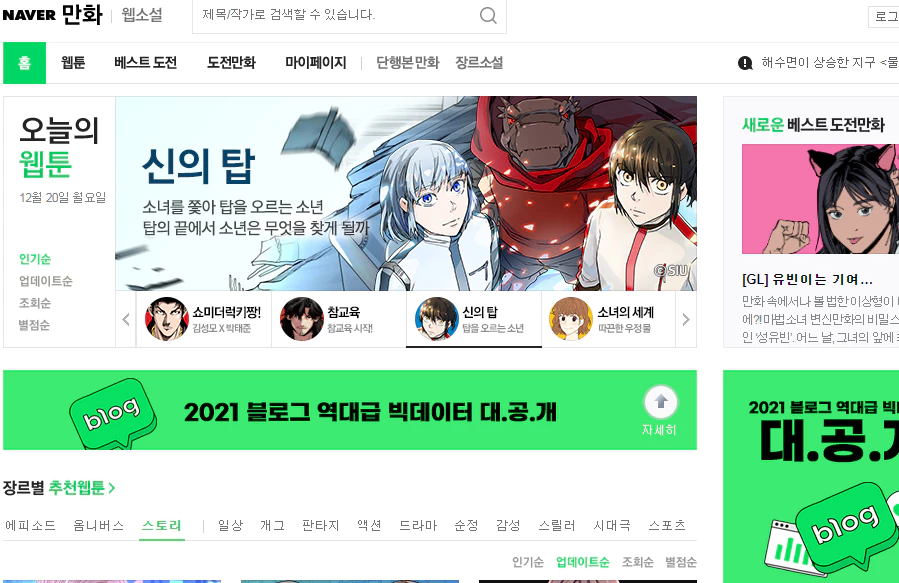 이러한 서브페이지는 서비스에 해당되는 키워드로 검색을 하시면 됩니다. 예를 들어 지도, 카페, 웹툰을 네이버 뒤에 붙이면 해당 서비스의 페이지로 접속이 가능합니다.