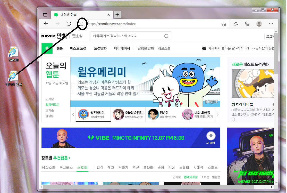 바탕화면에 아이콘을 만드는 방법은 간단합니다. 주소창 옆에 있는 아이콘을 바탕화면으로 그대로 드래그하면 됩니다. 이렇게 하면 바탕화면에서 아이콘이 생성되고, 클릭하면 웹사이트로 연결이 됩니다.