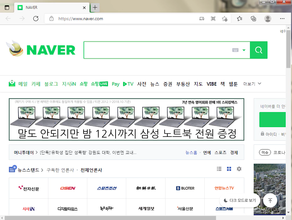 웹사이트로는 인터넷이 가능한 기기에서 브라우저를 통해 NAVER의 웹사이트로 들어가는 방법을 소개하도록 하겠습니다. 이는 컴퓨터뿐만아니라 스마트폰, 태블릿 등의 모바일 기기에서도 사용이 가능합니다. 이렇게 들어가는 방법도 세부 방법이 존재합니다.