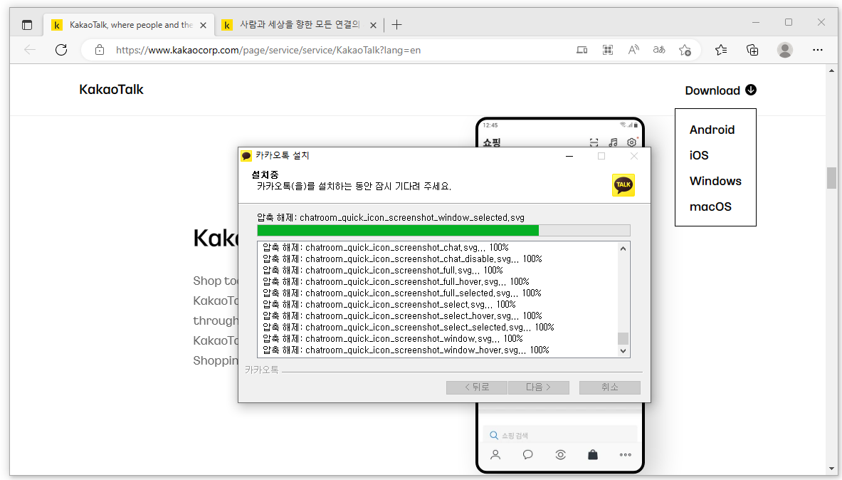 - 카카오톡 설치마법사를 통한 인스톨 진행.
