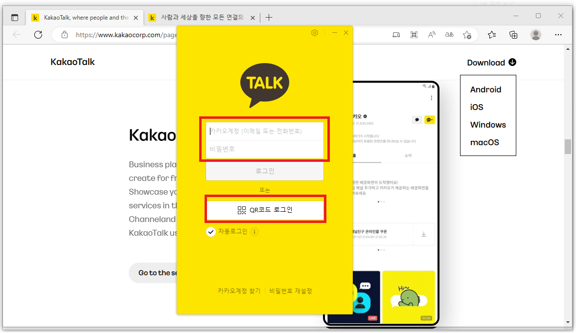 - 카카오톡 홈페이지 접속.