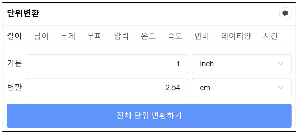 이번 글에서 허리둘레 76cm가 인치로 계산을 할 때 어떻게 되는지 확인해봄으로써 단위 계산이 어떻게 되는지 확인해보도록 하겠습니다. 이를 위하여 단위환산기를 통하여 센티미터와 인치를 변환해보았는데요.